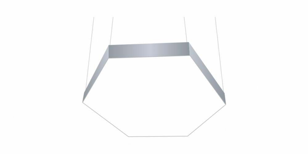 Светодиодный светильник в виде гексагона LiNE-PRO мощностью 280 Вт  1700  мм изготовлен из алюминиевого основания, с установленными на него светодиодными модулями. Возможна различная цветовая температура - 3000К, 4000К, 5000К, 6000К. Боковины могут быть изготовлены из плотного ПВХ различного цвета, на выбор или светотехнического акрила и выполнять функцию рассеивателя. Блок питания внутри корпуса светильника. Монтаж на тросовых подвесах или непосредственно к потолку или стене.