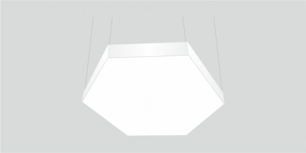 Светодиодный светильник в виде гексагона LiNE-PRO мощностью 350 Вт 2000 мм изготовлен из алюминиевого основания, с установленными на него светодиодными модулями. Возможна различная цветовая температура - 3000К, 4000К, 5000К, 6000К. Боковины могут быть изготовлены из плотного ПВХ различного цвета, на выбор или светотехнического акрила и выполнять функцию рассеивателя. Блок питания внутри корпуса светильника. Монтаж на тросовых подвесах или непосредственно к потолку или стене.