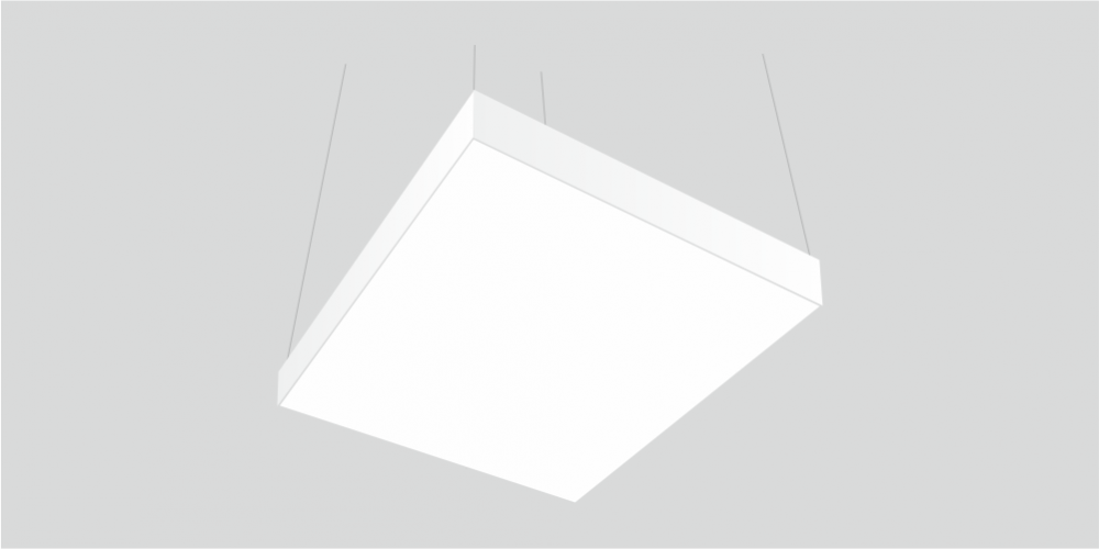 Светодиодный светильник в виде квадрата LiNE-PRO мощностью 3000 Вт и 1500 мм изготовлен из алюминиевого основания, с установленными на него светодиодными модулями. Возможна различная цветовая температура - 3000К, 4000К, 5000К, 6000К. Боковины могут быть изготовлены из плотного ПВХ различного цвета, на выбор или светотехнического акрила и выполнять функцию рассеивателя. Блок питания внутри корпуса светильника. Монтаж на тросовых подвесах или непосредственно к потолку или стене.