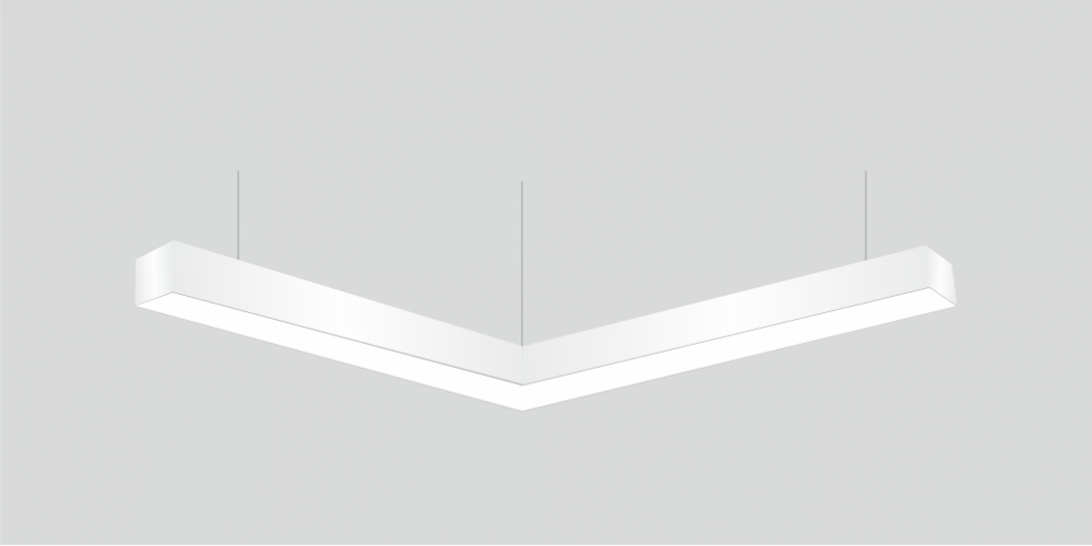 Светодиодный Угловой светильник LiNE-Pro 120гр. 1000х1000mm 80W 3000K белый предназначен для накладного или подвесного монтажа на тросовые подвесы. Изготовлен из сплошного сварного алюминиевого профиля в виде угла под 120 градусов. Высота установки светильника регулируется подвесом с цанговым тросовым зажимом и может варьироваться от 0,05 метра до 4 метров от основного потолка. Светильник имеет равномерную засветку по всей площади рассеивателя. Источник питания находится внутри корпуса. Торцевые заглушки входят в комплект. Возможно изготовление светильника с магистральной проводкой для соединения нескольких светильников в сплошную конструкцию.