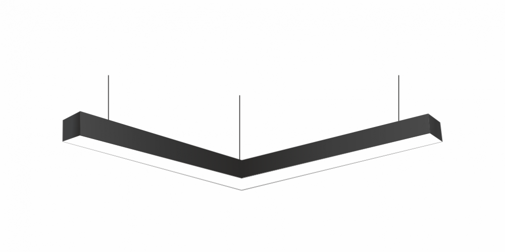 Светодиодный Угловой светильник LiNE-Pro 120гр. 500х500mm 40W 3000K черный предназначен для накладного или подвесного монтажа на тросовые подвесы. Изготовлен из сплошного сварного алюминиевого профиля в виде угла под 120 градусов. Высота установки светильника регулируется подвесом с цанговым тросовым зажимом и может варьироваться от 0,05 метра до 4 метров от основного потолка. Светильник имеет равномерную засветку по всей площади рассеивателя. Источник питания находится внутри корпуса. Торцевые заглушки входят в комплект. Возможно изготовление светильника с магистральной проводкой для соединения нескольких светильников в сплошную конструкцию.