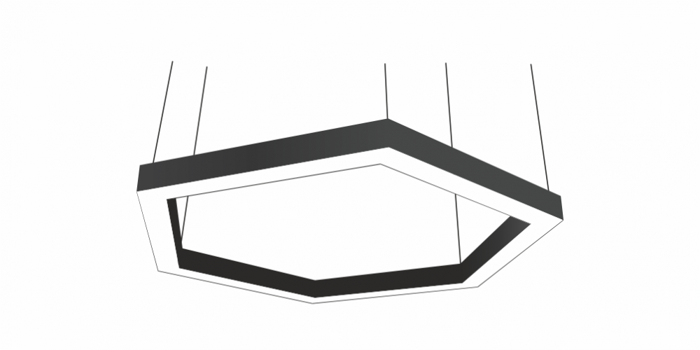 Светодиодный Шестиугольный светильник LiNE-Pro 6х500mm 110W 3000K черный предназначен для накладного или подвесного монтажа на тросовые подвесы. Изготовлен из сплошного сварного алюминиевого профиля в виде шестиугольника. Высота установки светильника регулируется подвесом с цанговым тросовым зажимом и может варьироваться от 0,05 метра до 4 метров от основного потолка. Шестиугольный линейный светильник имеет равномерную засветку по всей площади рассеивателя. Источник питания находится внутри корпуса.