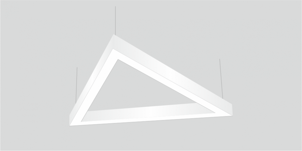 Светодиодный Треугольный светильник LiNE-Pro 3х500mm 30W 4000K белый предназначен для накладного или подвесного монтажа на тросовые подвесы. Изготовлен из сплошного сварного алюминиевого профиля в виде равностороннего треугольника. Высота установки светильника регулируется подвесом с цанговым тросовым зажимом и может варьироваться от 0,05 метра до 4 метров от основного потолка. Треугольный светильник имеет равномерную засветку по всей площади рассеивателя. Источник питания находится внутри корпуса.