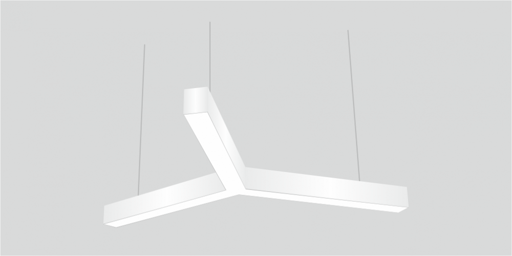 Светодиодный Лучевой светильник LiNE-Pro 3х500mm 60W 5000K белый предназначен для накладного или подвесного монтажа на тросовые подвесы. Изготовлен из сплошного сварного алюминиевого профиля в виде буквы «Y». Высота установки светильника регулируется подвесом с цанговым тросовым зажимом и может варьироваться от 0,05 метра до 4 метров от основного потолка. Светильник имеет равномерную засветку по всей площади рассеивателя. Источник питания находится внутри корпуса. Торцевые заглушки входят в комплект. Возможно изготовление светильника с магистральной проводкой для соединения нескольких светильников в сплошную конструкцию.