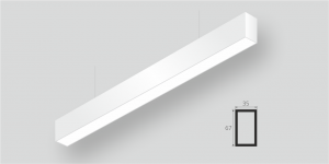 Линейный светодиодный Подвесной светильник LiNE-Pro 67x35 1000mm 40W 4000K Белый предназначен для подвесного монтажа на тросовые подвесы. Изготовлен из алюминиевого профиля длиной 1000 мм, мощностью 40 Вт c цветовой температурой 4000 K, цвет корпуса Белый. Высота установки светильника регулируется подвесом с цанговым тросовым зажимом и может варьироваться от 0,05 метра до 4 метров от основного потолка. Линейный светильник может использоваться для реечных потолков. Светильник имеет равномерную засветку по всей площади рассеивателя. Источник питания находится внутри корпуса. Торцевые заглушки входят в комплект.