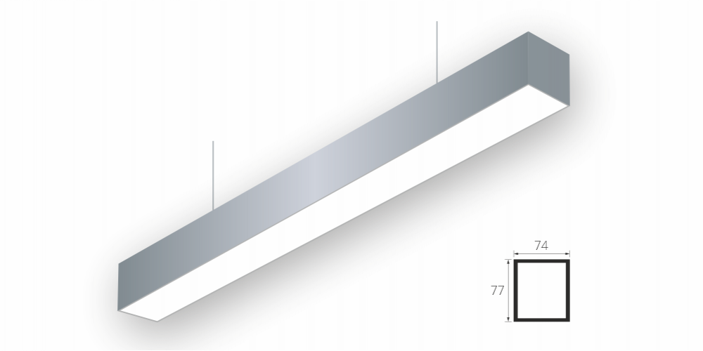Линейный светодиодный Подвесной светильник LiNE-Pro 77x74 1750mm 53W 4000K Серый предназначен для подвесного монтажа на тросовые подвесы. Изготовлен из алюминиевого профиля длиной 1750 мм, мощностью 53 Вт c цветовой температурой 4000 K, цвет корпуса Серый. Высота установки светильника регулируется подвесом с цанговым тросовым зажимом и может варьироваться от 0,05 метра до 4 метров от основного потолка. Линейный светильник может использоваться для реечных потолков. Светильник имеет равномерную засветку по всей площади рассеивателя. Источник питания находится внутри корпуса. Торцевые заглушки входят в комплект.