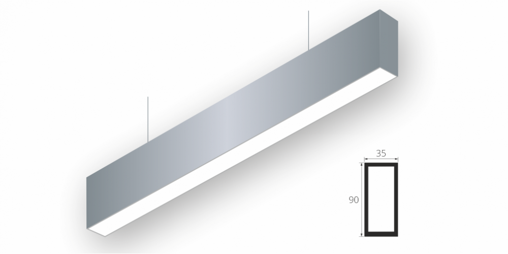 Линейный светодиодный Подвесной светильник LiNE-Pro 90x35 1250mm 75W 3000K Серый предназначен для подвесного монтажа на тросовые подвесы. Изготовлен из алюминиевого профиля длиной 1250 мм, мощностью 75 Вт c цветовой температурой 3000 K, цвет корпуса Серый. Высота установки светильника регулируется подвесом с цанговым тросовым зажимом и может варьироваться от 0,05 метра до 4 метров от основного потолка. Линейный светильник может использоваться для реечных потолков. Светильник имеет равномерную засветку по всей площади рассеивателя. Источник питания находится внутри корпуса. Торцевые заглушки входят в комплект.