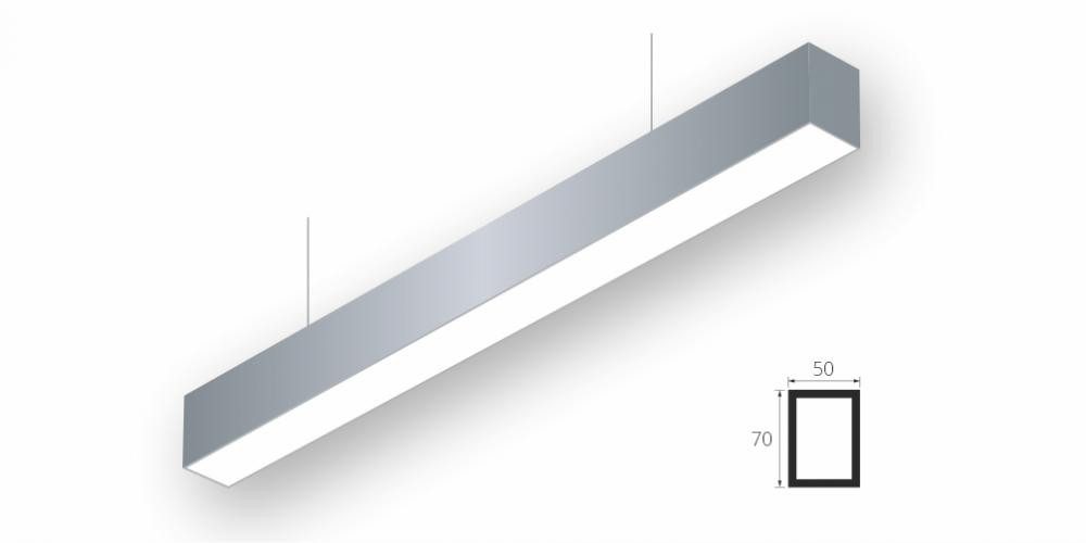 Линейный модульный светодиодный Подвесной светильник LiNE-Pro 70x50 500mm 8W 5000K Серый предназначен для подвесного монтажа на тросовые подвесы. Изготовлен из алюминиевого профиля длиной 500 мм, мощностью 8 Вт c цветовой температурой 5000 K, цвет корпуса Серый. Светильники соединяются в сплошную линию с помощью комплекта линейного соединения и сплошной магистральной проводки. Светильник имеет равномерную засветку по всей площади рассеивателя. Источник питания находится внутри корпуса.